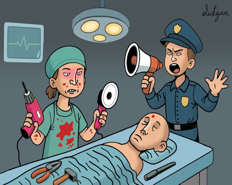 После того, как израильская нейро-хирург позволила своей 12-летней дочери просверлить череп пациенту, начальник израильской полиции дал своему сыну разрешение ее арестовать.